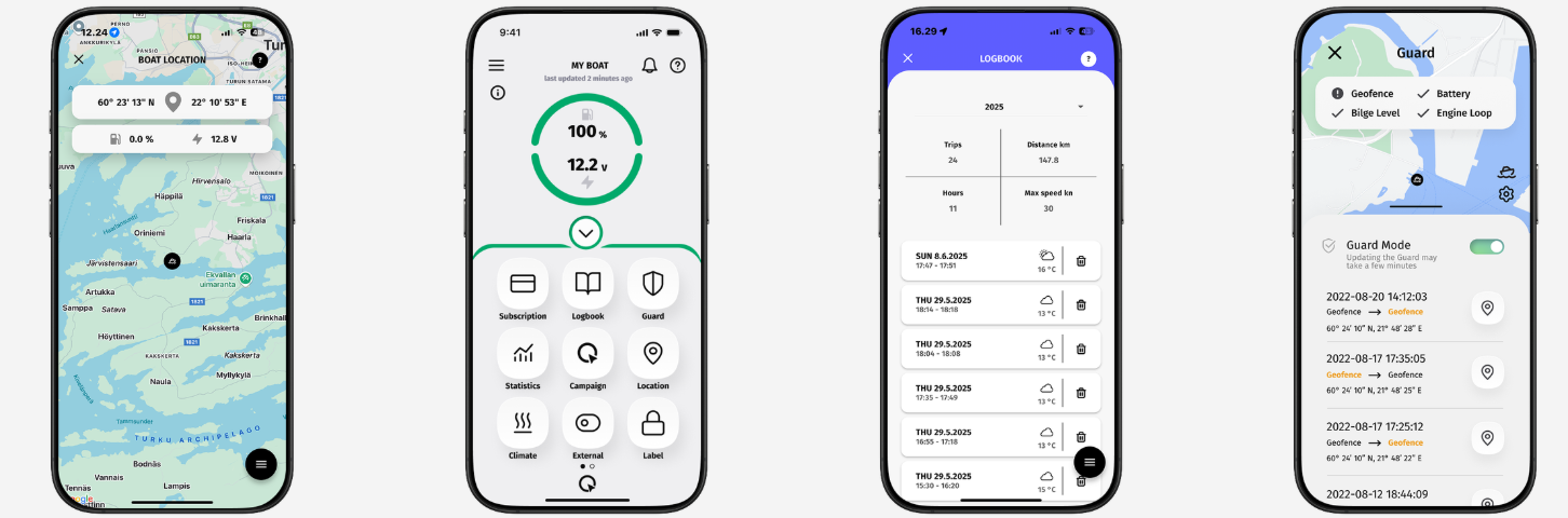 Houd automatisch je bootavonturen bij. Elke reis wordt geregistreerd met route, tijd, snelheid, afstand, verbruikte brandstof en weersomstandigheden.
