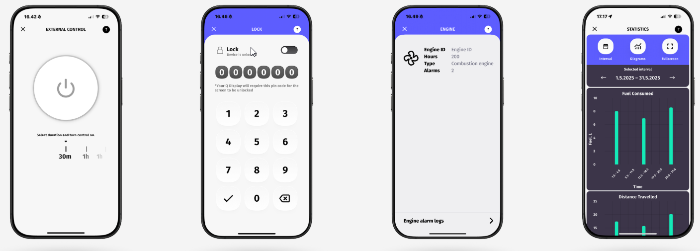 Met de Q App blijf je verbonden met je boot, zelfs wanneer het Q Display is uitgeschakeld. Met een Q Connected-abonnement kun je de realtime status van je boot volgen, meldingen ontvangen als er iets niet in orde is, bepaalde apparaten op afstand bedienen en inzicht krijgen in je bootgegevens.