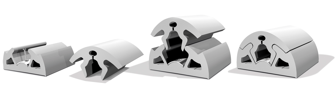 Bevestig het buitenprofiel doormiddel van de RVS montagestrip op de romp en druk vervolgens het midden profiel tussen het buitenprofielen in.