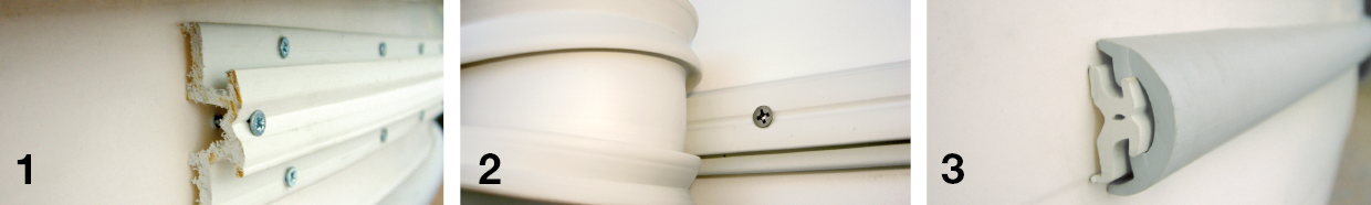 Buig het profiel met een bocht van meer dan 45°, de randen zullen dan enigszins terugwijken. Druk vervolgens de stootlijst op de montagestrip en werk snel voorwaarts verder. Het stootlijstprofiel “klikt” als het ware op de montagestrip en zit dan stevig op zijn plaats. RADIAL 40 & 52 laten zich koud verwerken. RADIAL 80 benodigt een omgevingstemperatuur van 40°C.